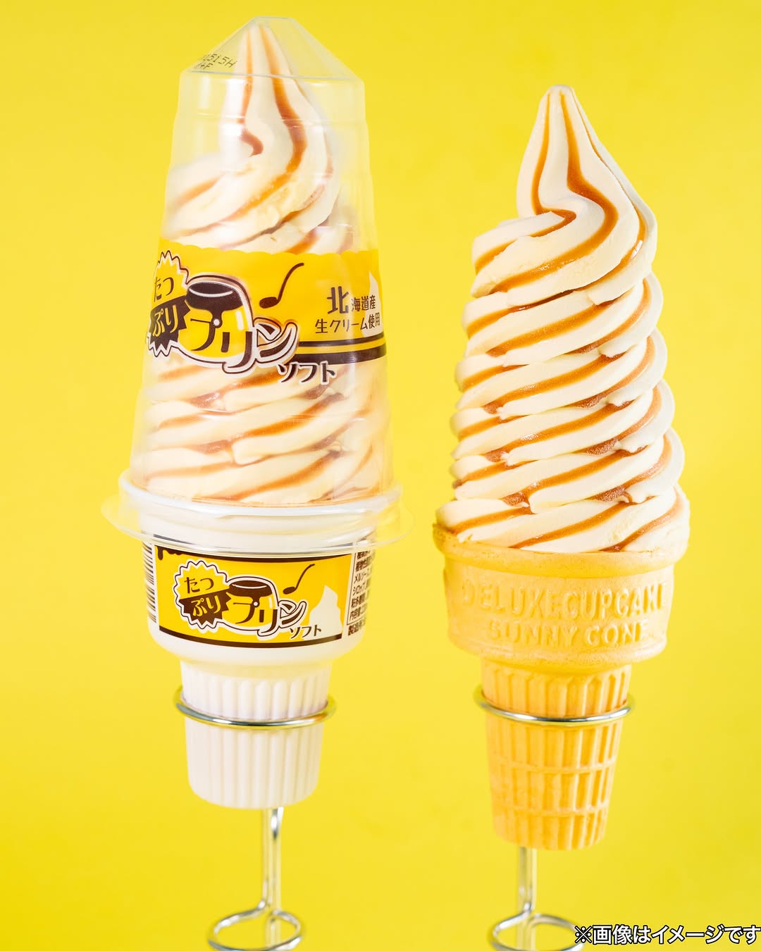 商品名の通り、プリンの風味をソフトクリーム仕立てで楽しめるアイスです。北海道産生クリームを使用したプリンアイスに、味を引き立てるほろ苦いカラメルソースを合わせているのが特徴。甘さだけに寄らず、カラメルの苦みが入ることで後味が締まりやすい構成です。