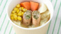 ファミリーマートの「ゆず香る!旨塩スープ」は、1/3日分の野菜を使った具だくさんのスープです。鶏や魚介のうまみをベースに、蒸し鶏やキャベツ、もやしを合わせ、仕上げにゆずの香りをプラス。軽めでも満足感のある食事を探している人に向く一品です。